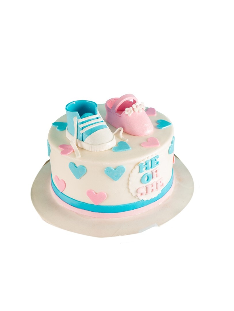 Sweet baby boy or girl cake with pastel accents — perfect for showers, birthdays, or gender reveals.