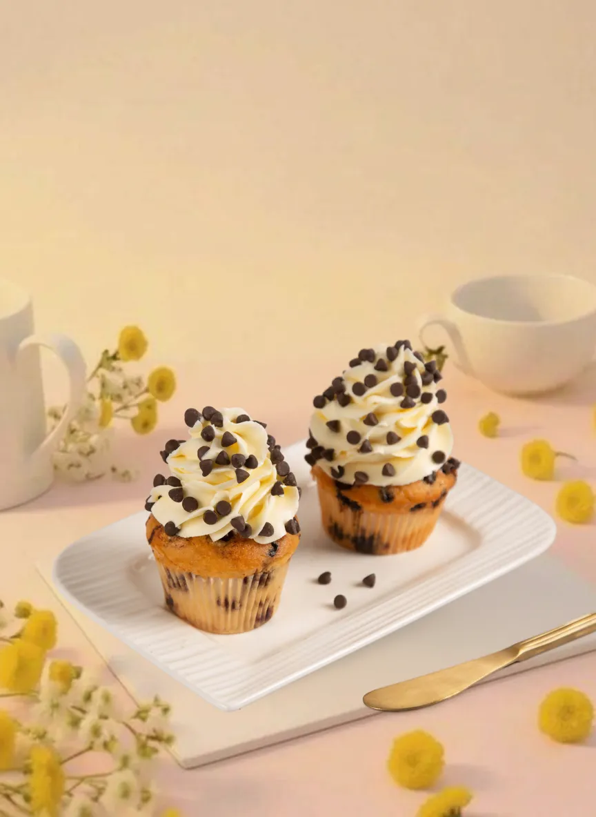 Choco chip cupcake with soft sponge, creamy frosting, and rich chocolate chips—perfect for celebrations, gifting, or a sweet everyday treat.