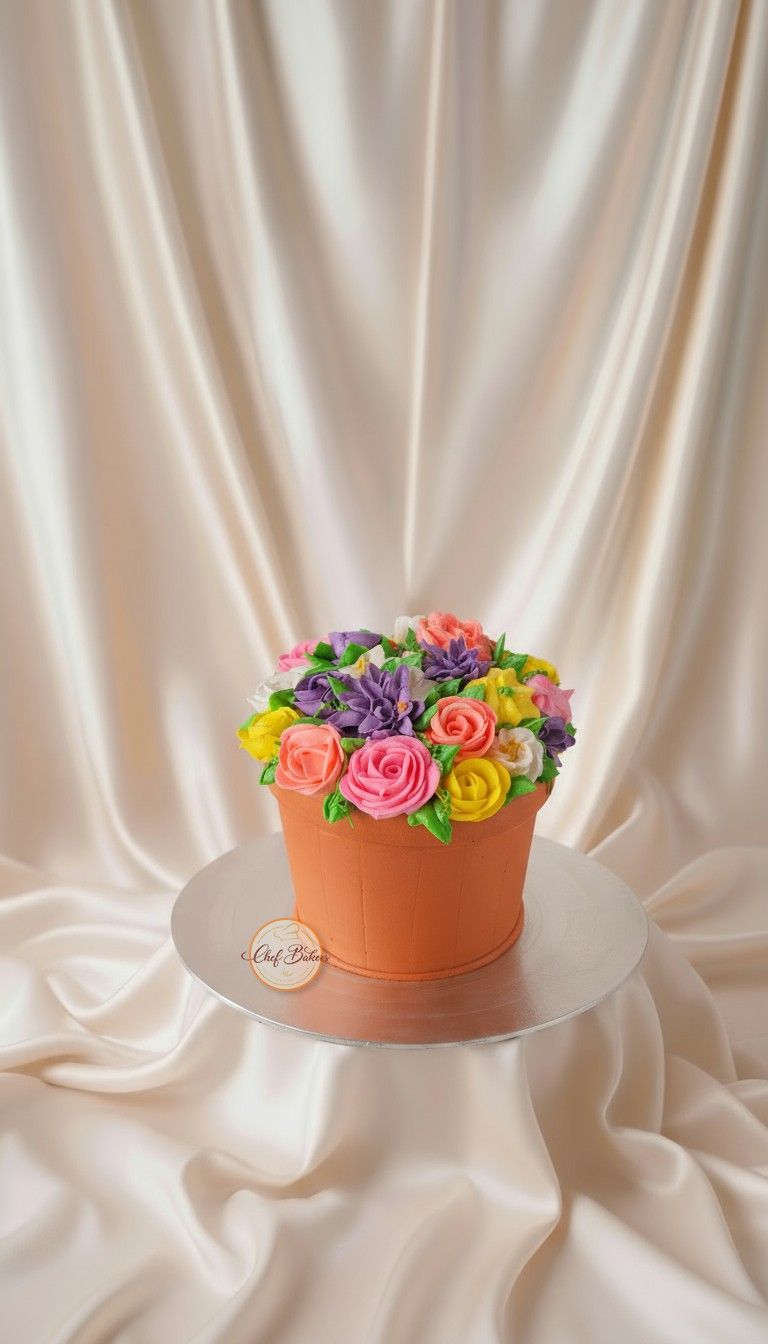 Unique flower vase cake with vibrant roses and blooms — a stunning choice for birthdays, weddings, or garden-themed parties.