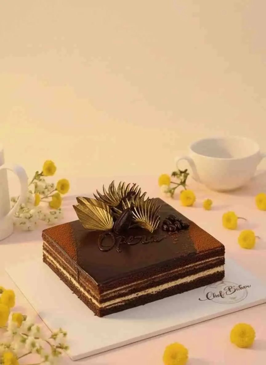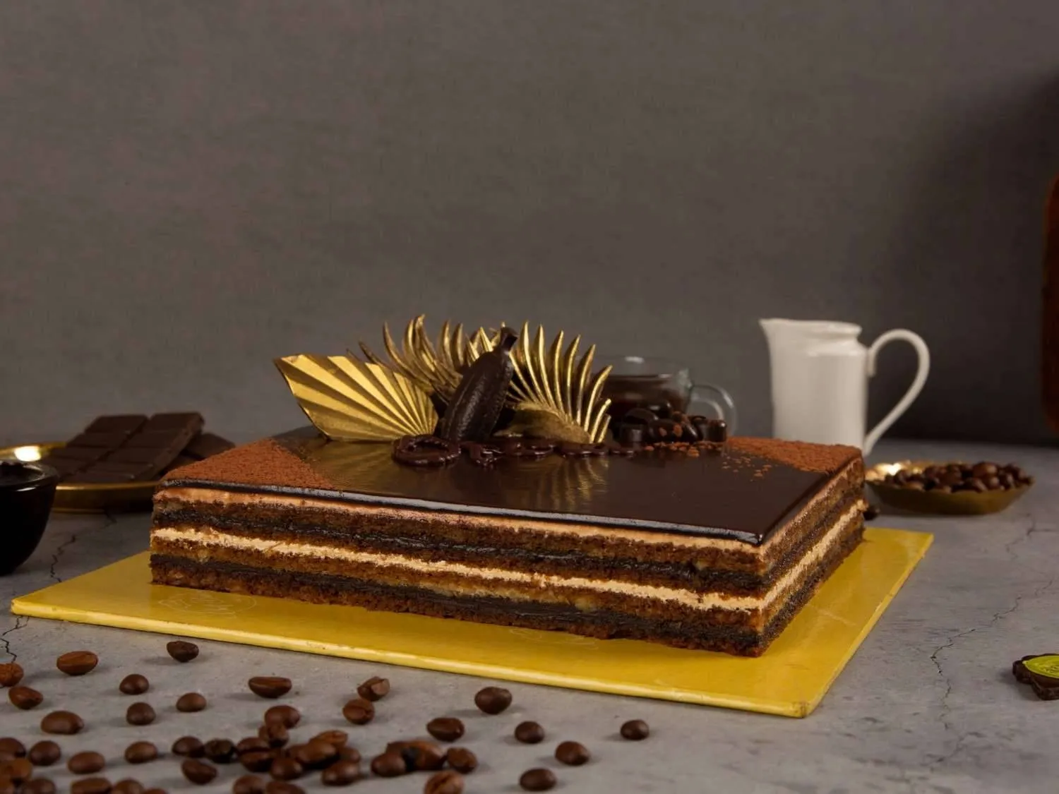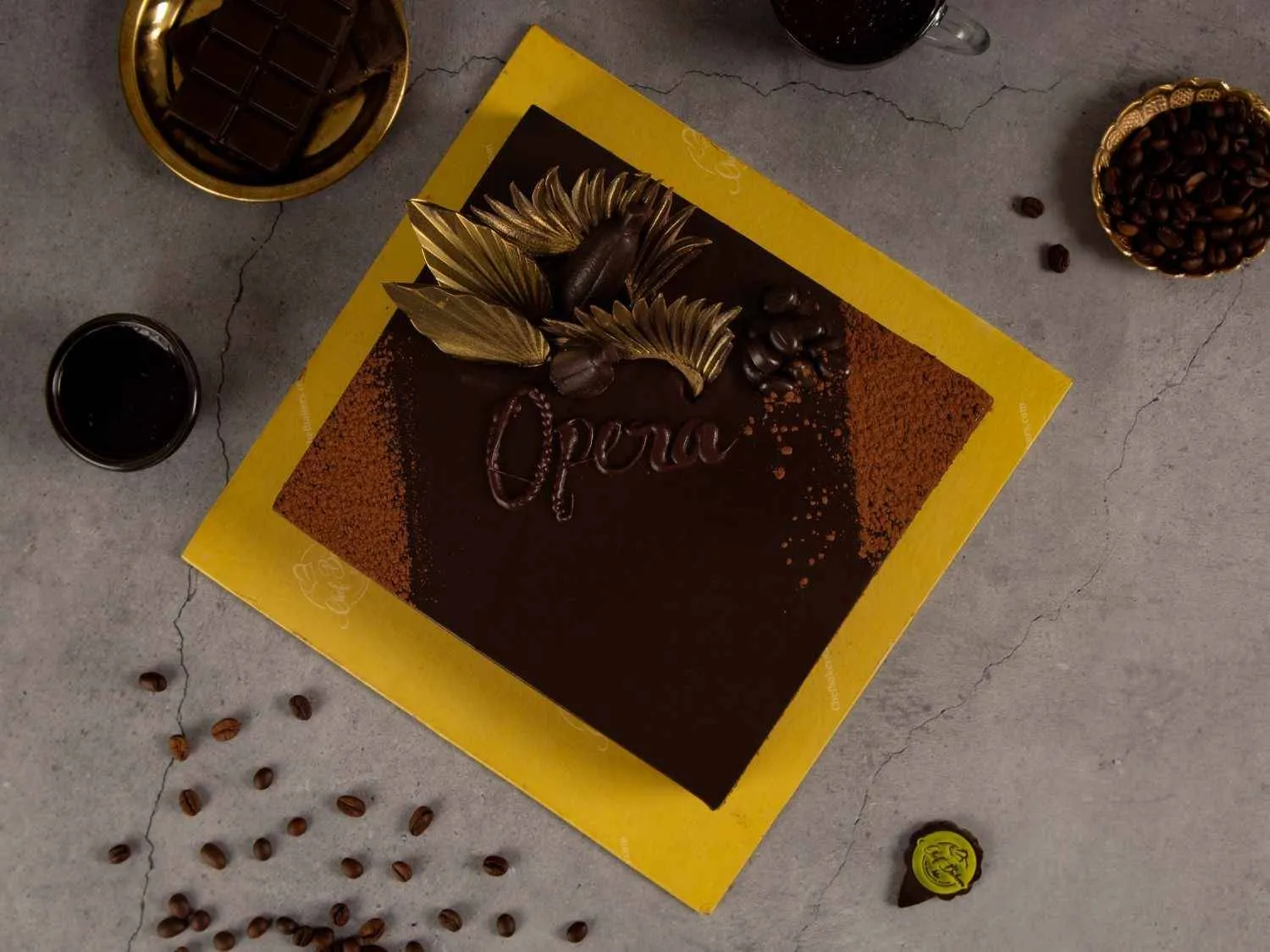French Opera Cake– A classic French dessert with layers of almond sponge, coffee buttercream, and rich chocolate ganache for an elegant indulgence.