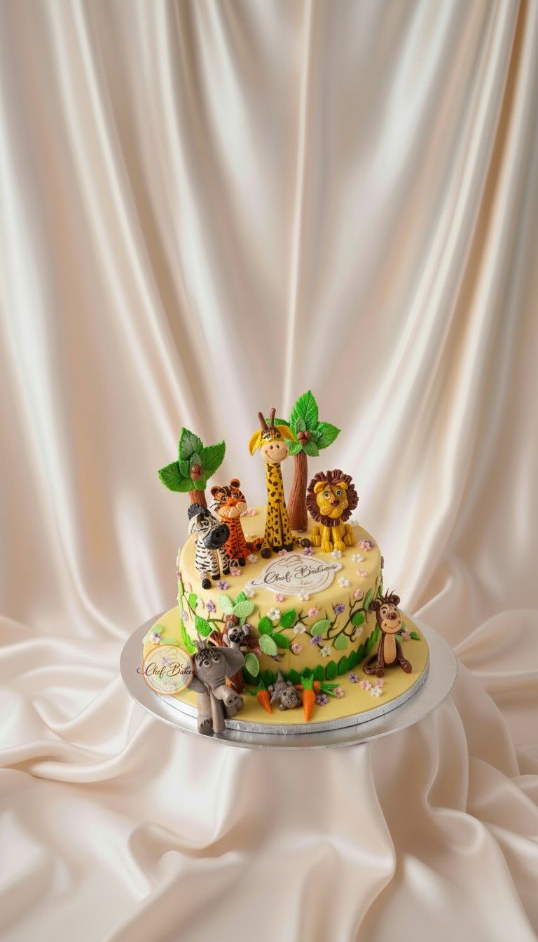 Fun jungle cake with adorable animal toppers — perfect for kids’ birthdays and wildlife-themed celebrations.