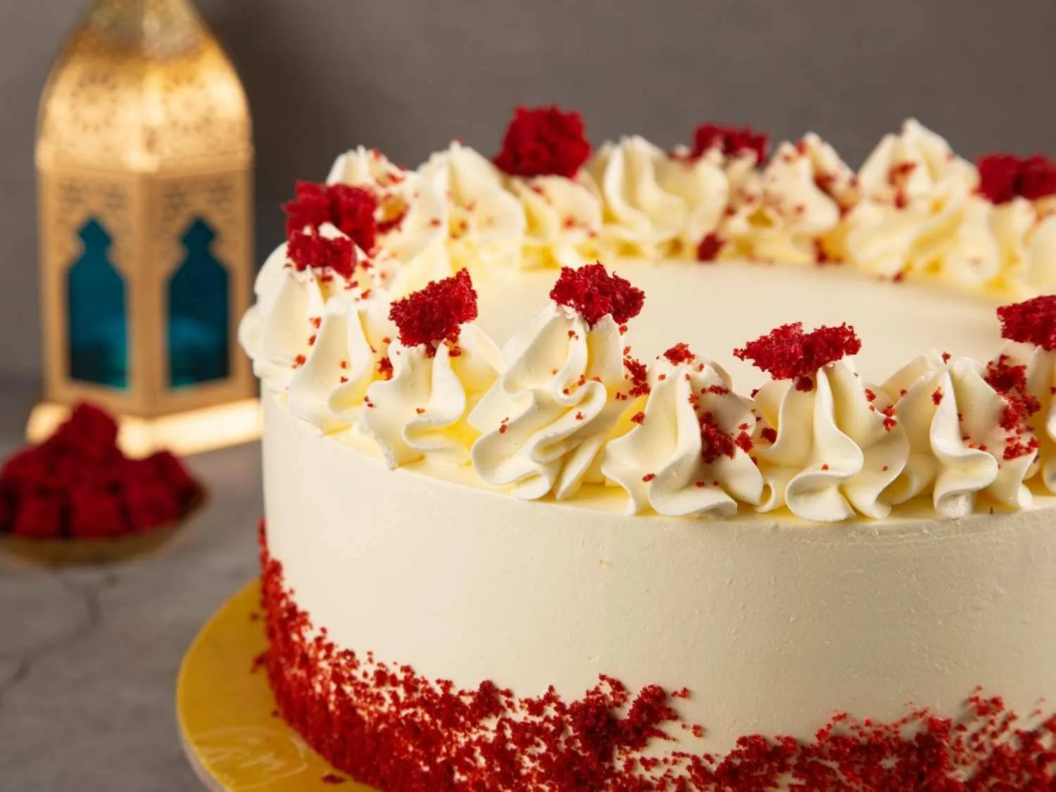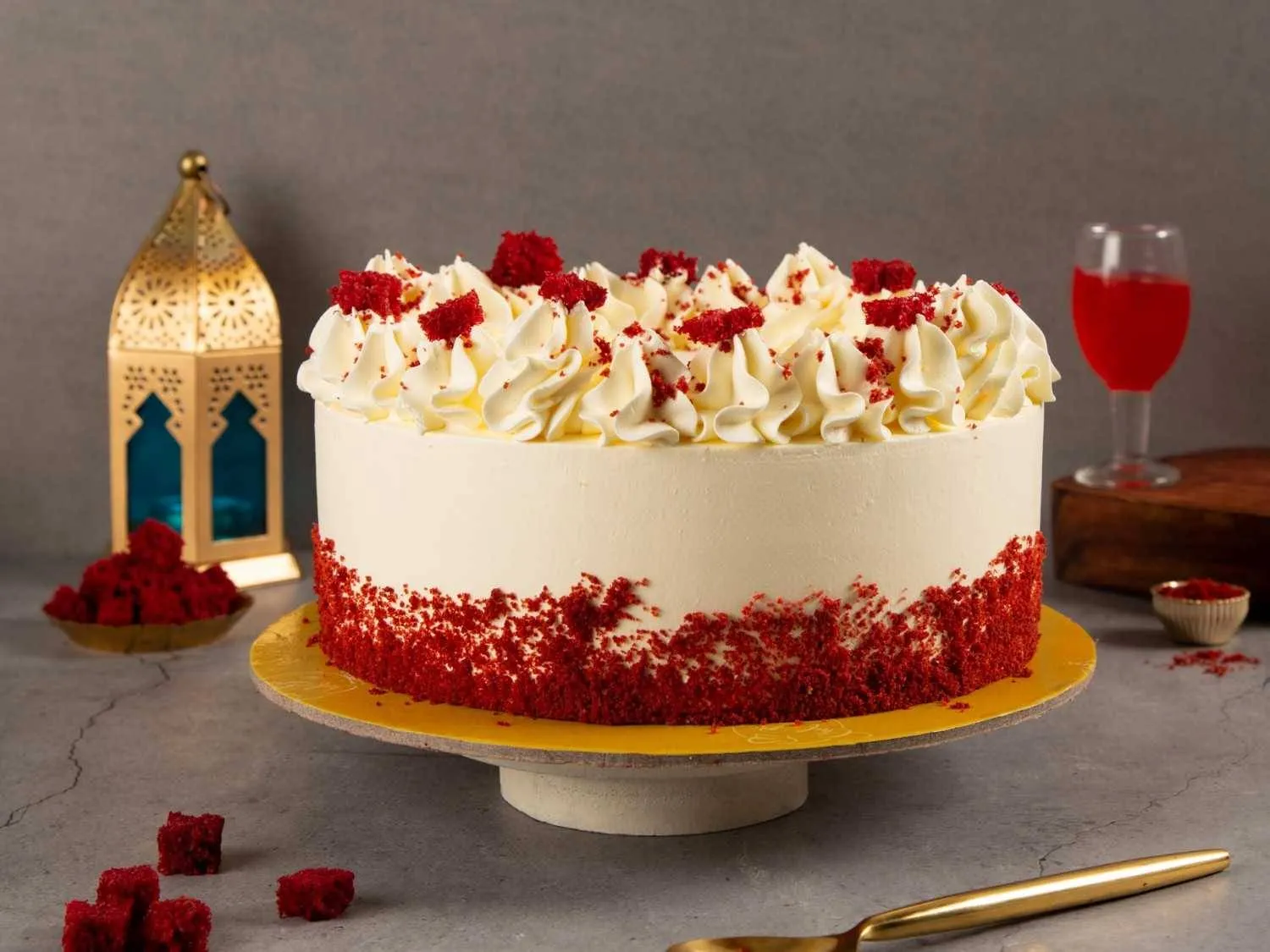 Red Velvet Cake (Eggless) with soft red sponge and layers of cream cheese frosting, a timeless dessert for celebrations and special moments