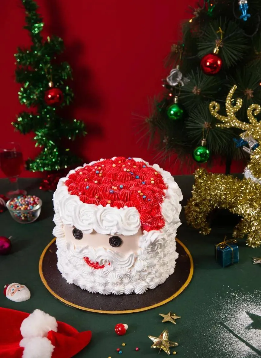 Enjoy the festive cheer with a delightful Santa Face Cake, crafted with rich flavors and decorated to bring holiday joy to any celebration!