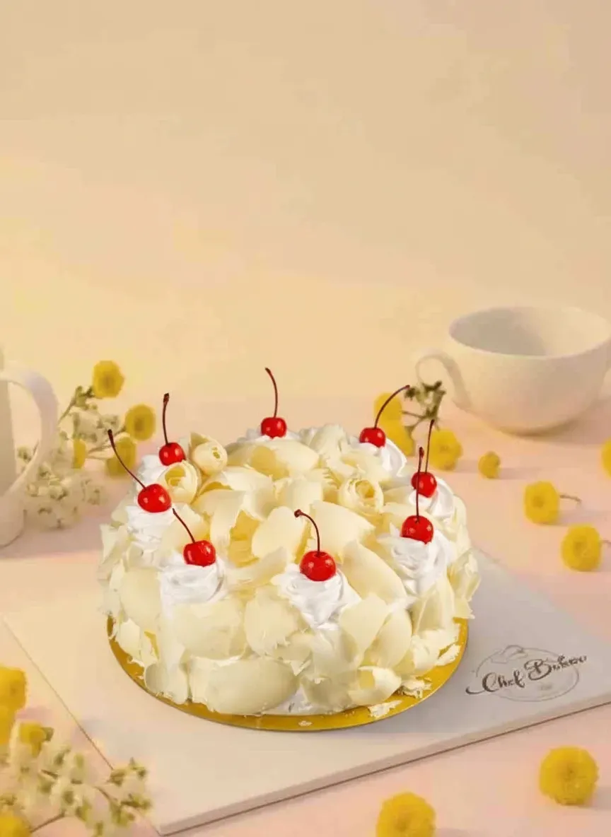 Inspired by the classic Black Forest cake, the White Forest Gateaux replaces dark chocolate with smooth white chocolate, creating a milder, creamier flavor that melts perfectly with every bite. The combination of fluffy sponge, luscious cream, and fruity cherry filling makes it a refreshing and irresistible treat.
