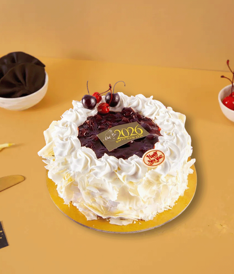Soft white forest cream cake with cherry filling and fluffy whipped topping—light, fruity, and festive.