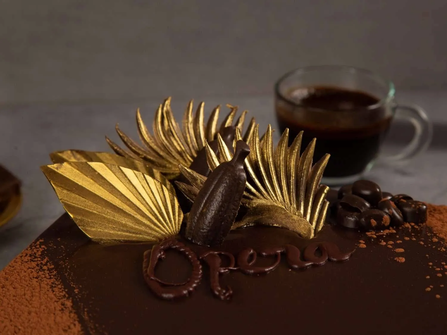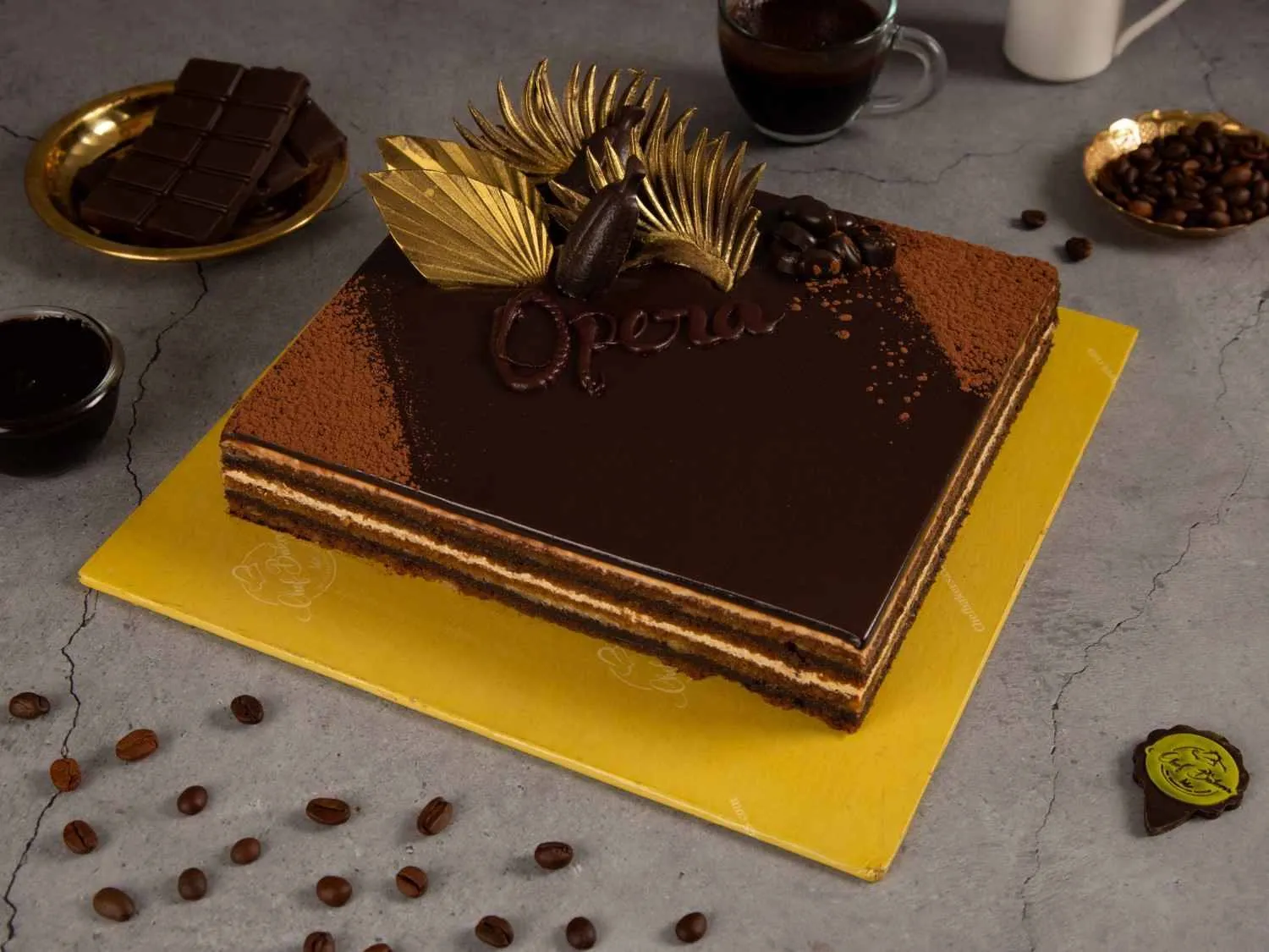 French Opera Cake– A classic French dessert with layers of almond sponge, coffee buttercream, and rich chocolate ganache for an elegant indulgence.