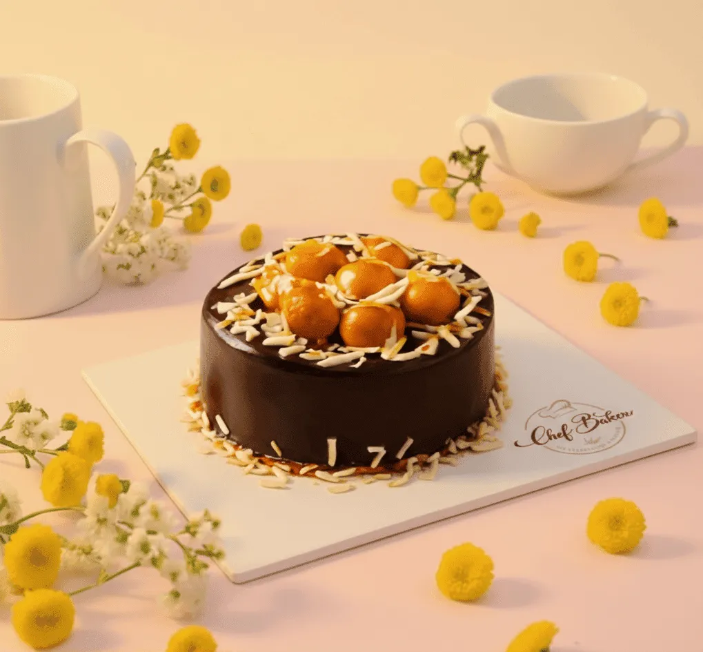 Moist vanilla sponge soaked in rose syrup, layered with rich cream and chunks of soft Gulab Jamun. A heavenly fusion of India’s favorite sweet and a delightful cake — perfect for birthdays, festivals, or pure indulgence!