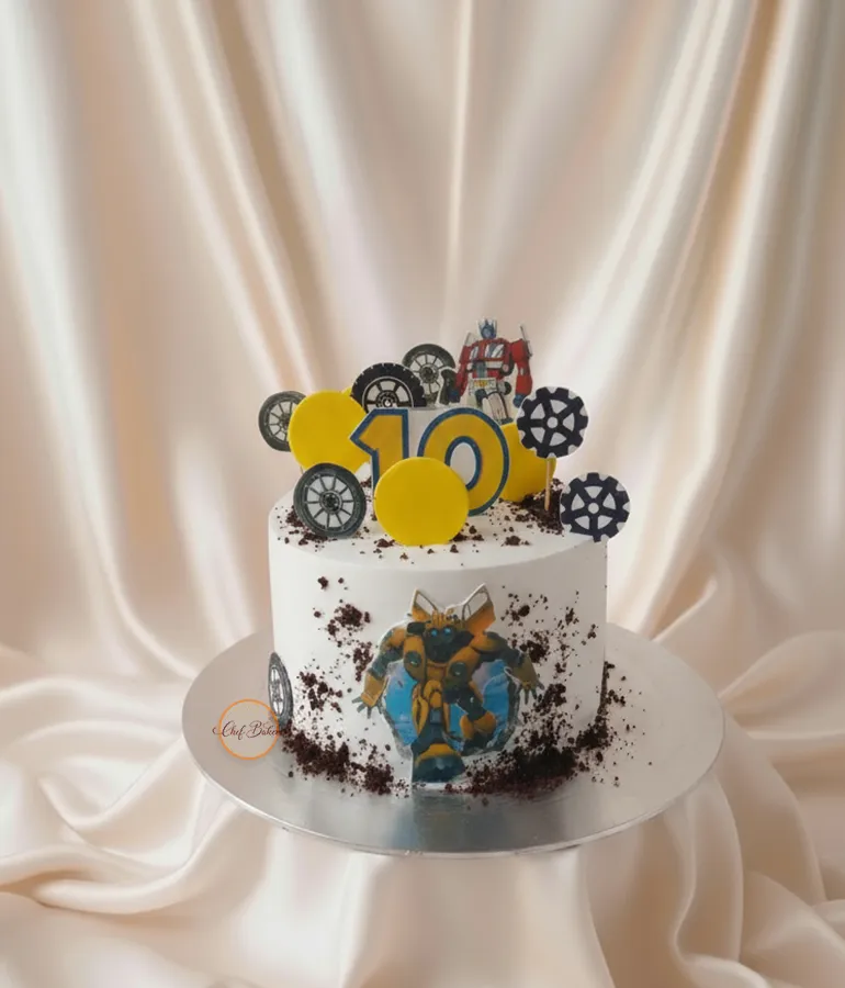 You're viewing: Transformers-Themed Birthday Cake with Bumblebee and Wheels Starts from 1,800.00